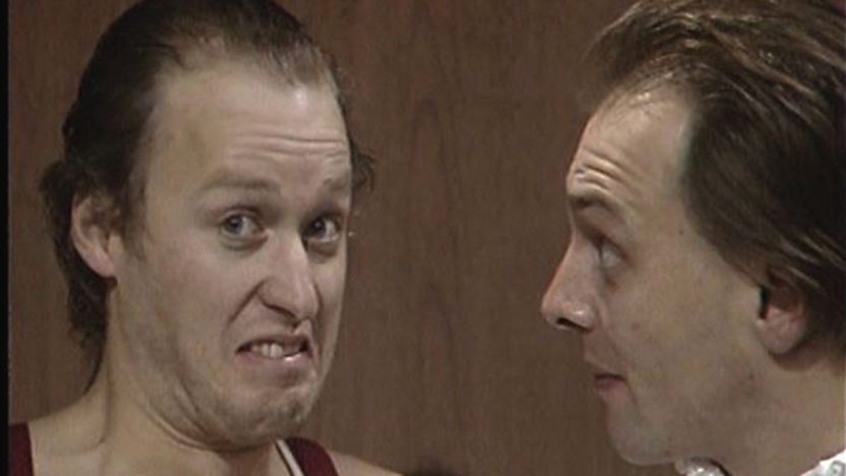 Filthy Rich & Catflap is a sitcom which broadcast in 1987 about a showbiz agent (Filthy), an out of work actor (Rich) and his disloyal, violent minder (Catflap). Here Rich stops the milkman from leaving when he suspects he is a snooping journalist.