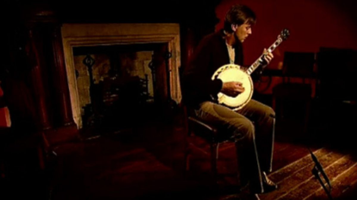 Banjo player Gerry O'Connor explains why he tunes his banjo CGDA. In Irish with English subtitles. Includes performance.