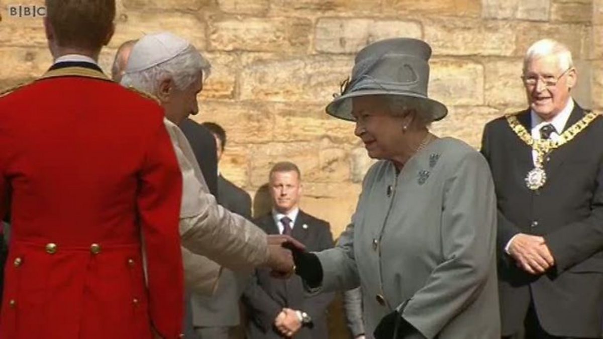 Pope Benedict XVI arrives in Edinburgh and is met by the Queen at Holyroodhouse.
