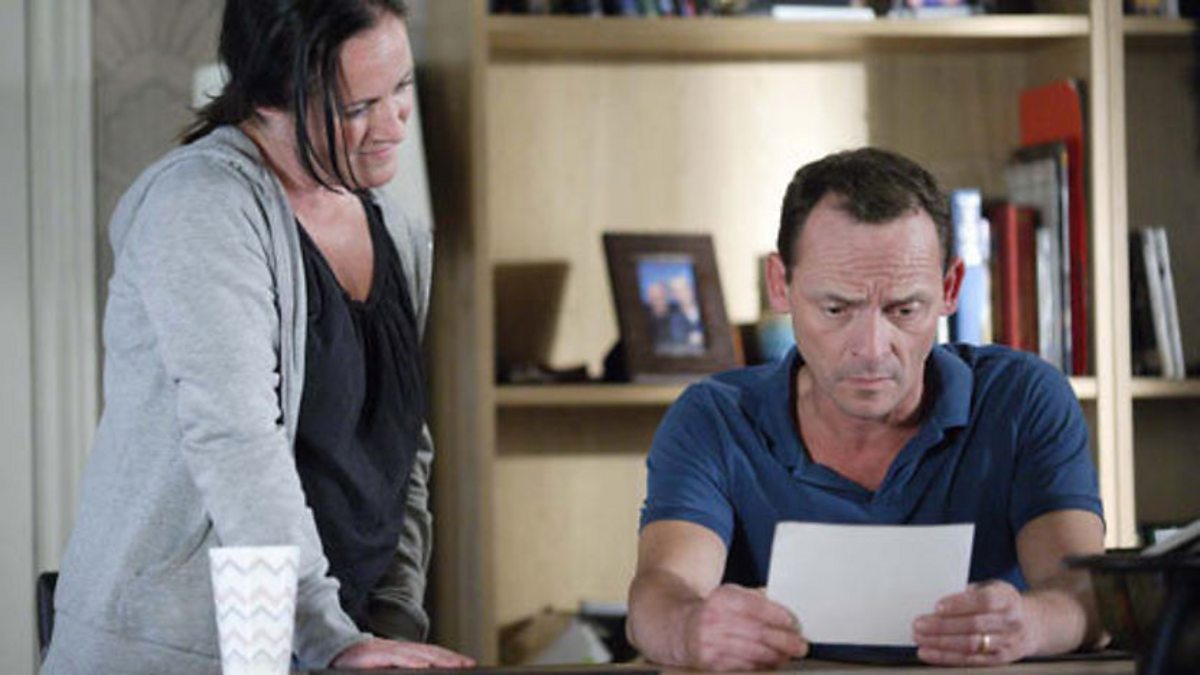 Billy’s visitor is Julie Perkins, Jay found her on Matesgate. Billy lies to Julie about how successful he is, but Julie sees straight through it. They talk about their time in care, she’s brought a photo of all the children that lived with them. They discuss the court case against Henry Mason one of the men who worked at the home, Julie doesn’t want to get involved with the case. Billy’s surprised. Julie was fourteen, what Mason did to her was statutory rape and she had to give up the resulting baby. Jay and Phil arrive home, Jay did well in his fight. Julie leaves. Phil and Jay tease Billy about Julie. Julie phones Billy and asks him to meet her in the café. There, she tells Billy that Henry Mason wasn’t the father of her baby, Billy was - he’s got a grown up son.