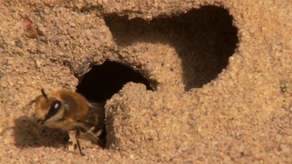 Chris Packham watches colonial wasps and bees nesting in a bank.