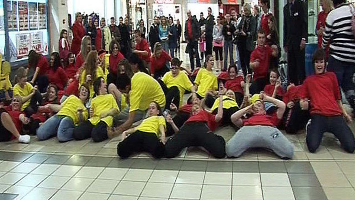 Out of nowhere a Flash Mob breaks out in Bow Street Mall To raise money for Children in Need