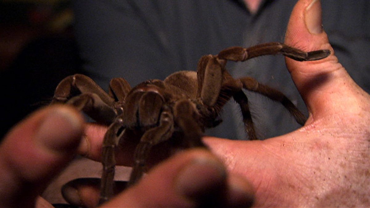 I was so pleased when we finally found this beautiful spider, that I didn't mind at all when she kicked hairs all over my face! The air was so full of her barbed body hairs that I inhaled some of them which made talking to camera quite difficult...' (George McGavin)