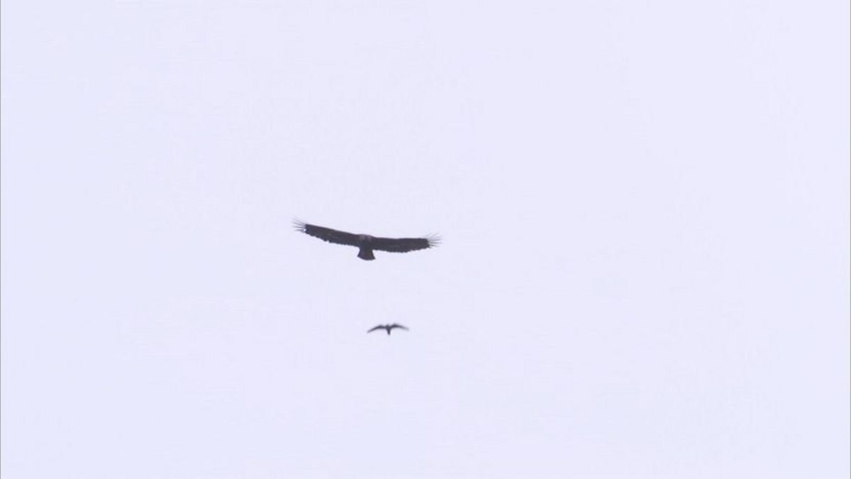 Caught on camera! A mystery bird of prey's fly-by on a golden eagle.