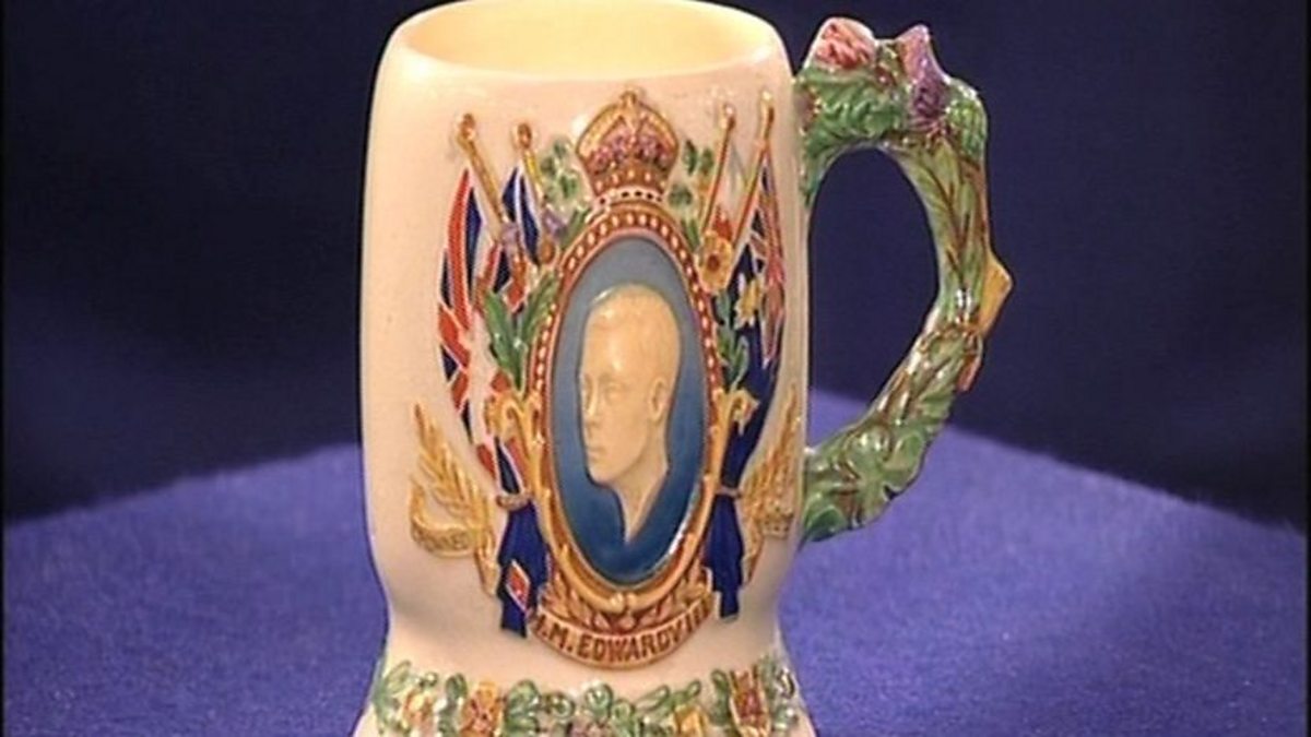 A mug made to commemorate the coronation of Edward VIII is brought to a Flog It valuation day in Stoke on Trent and examined by expert David Barby. But is it more valuable because Edward never took the throne?
