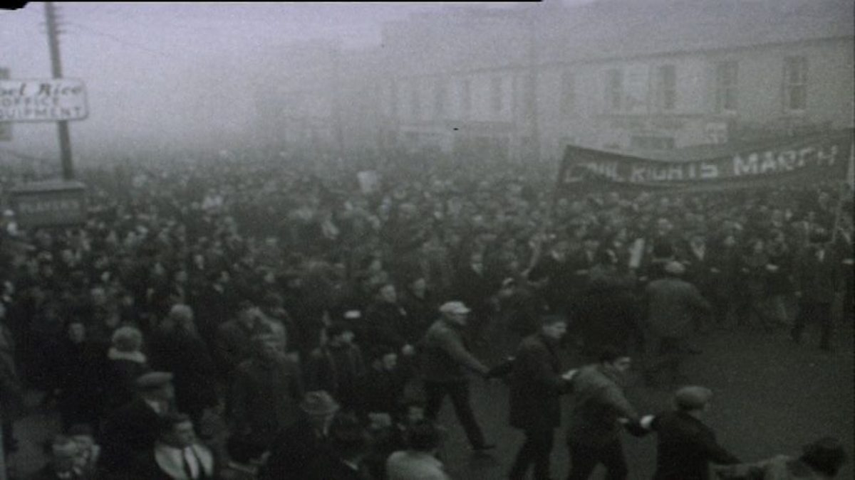 Fyfe Robertson reports on the People's Democracy, a Northern Irish civil rights organisation, as they march in Newry on 11th January 1969, and hears the views of a selection of students who participated in the event, including People's Democracy leader Michael Farrell.