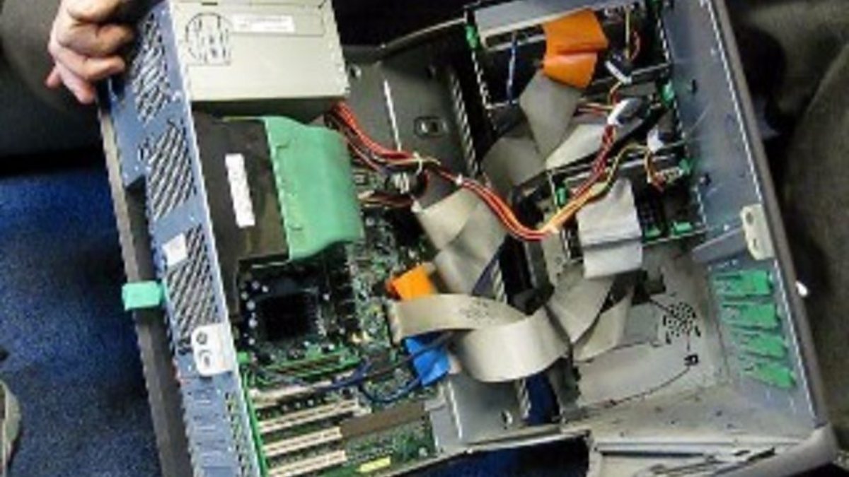 What's inside an ordinary desktop computer? Bill Thompson opens one up and shows us the drives, the power supply, and the memory chips.