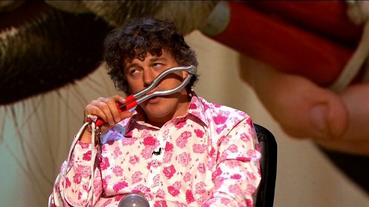 Stephen Fry and guests discuss how you would use a 'twitch' to calm a horse. By twisting the horse's top lip endorphins are released to the brain causing the horse to relax.