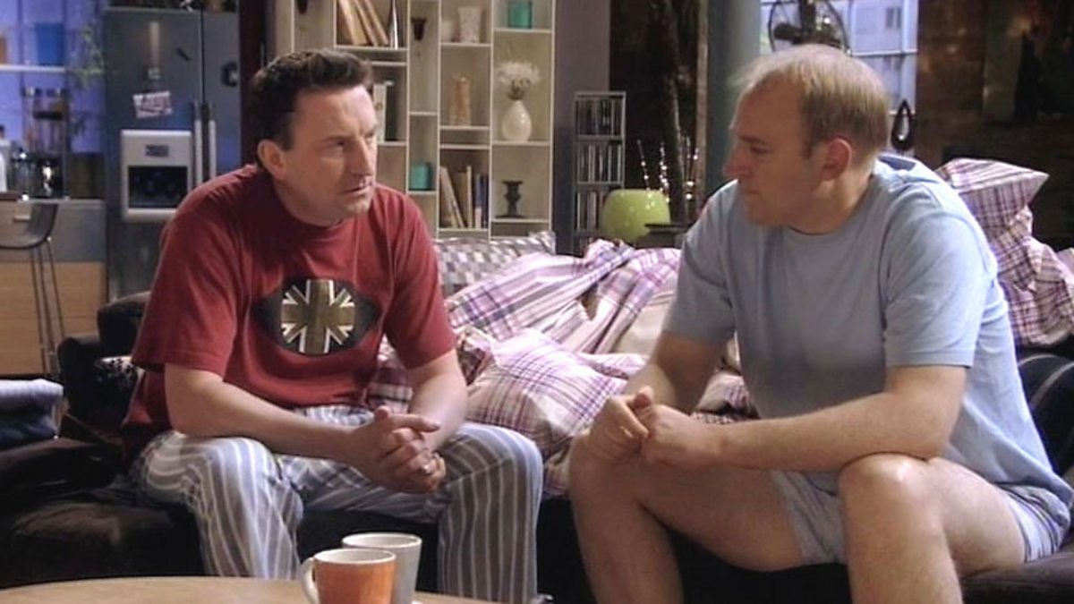 Lee and Tim go into hiding after Tim mistakenly returns to the flat wearing a coat packed with drugs. Lee moves his wardrobe in front of the flat door for protection.