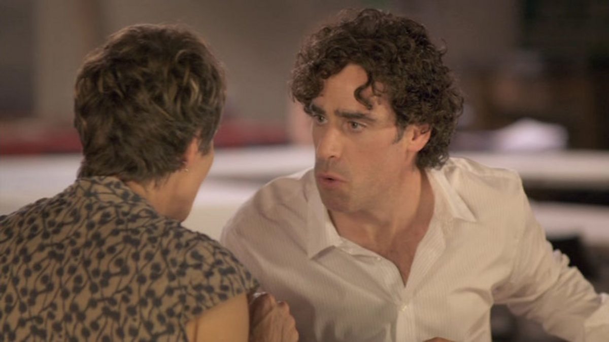 Sean (Stephen Mangan) asks Beverly (Tamsin Greig) to not be so combative with Matt (Matt LeBlanc) so that they can get on and make the show.