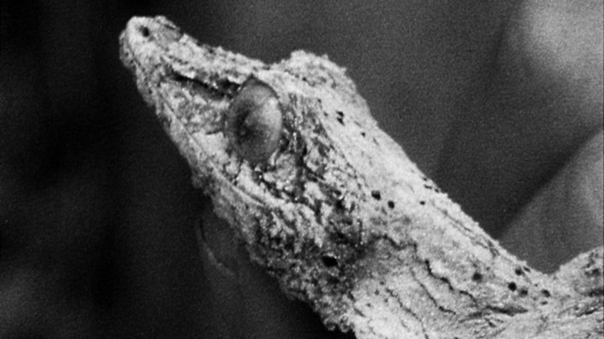 David Attenborough finds a leaf-tailed gecko, camouflaged against a tree-trunk. It is so well disguised, it is very hard to see. This little creature terrifies most Madagascans since they believe it to have a powerful evil spirit. If you touch one they say you must cut that part of your body to cleanse the evil with your blood. Its camouflage works because of flaps and growths that prevent it casting any shadows.