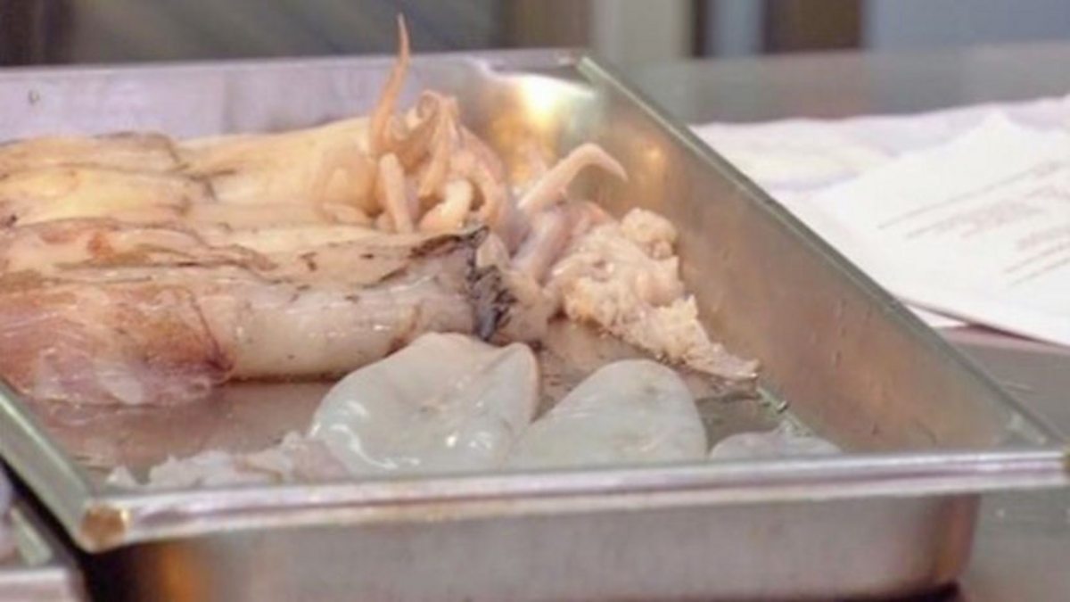 Raymond demonstrates how to prepare a squid for his spicy, seared squid salad.