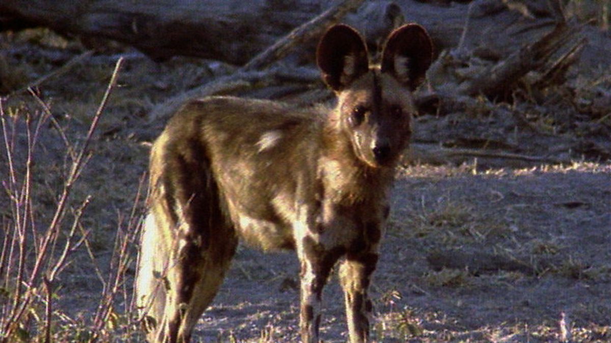 Jonathan Scott and Richard Goss are watching a pack of wild dogs. The alpha female spends most of her time at the den looking after the cubs so must rely on the rest of the pack to feed her. When the pack returns she approaches the others for food - in a very infantile way - prompting their regurgitation response. Around the den, a number of hooded vultures are looking for scraps of regurgitated food and wild dog faeces. The dogs chase the vultures but not in a very serious or aggressive way. As they watch, the dogs start stretching. This ritual is important to wild dogs as it not only prepares the muscles for action but also spreads the word that it is time to go. A series of elaborate greetings - gradually involving more and more dogs - is also important for strengthening bonds. When the dominant female emerges from her den she is instantly a focus of attention. The others constantly reinforce these social bonds as they thrash around, greeting and scent-marking each other.