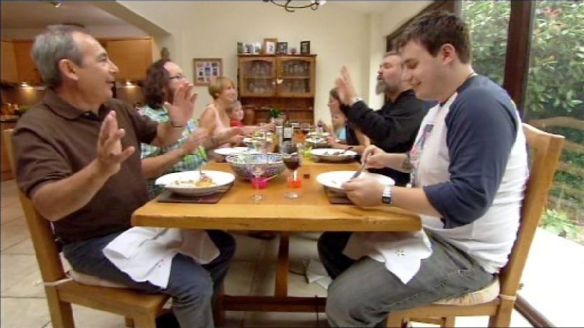 The first mum, Avis and her family sing about Dewi the marrow they have just cooked!