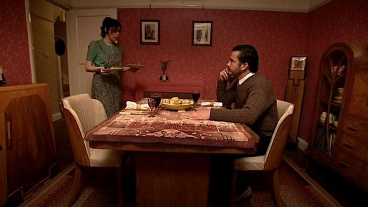 Sue Perkins attempts to source ingredients for a wartime Sunday lunch, for her 'husband' Giles Coren.