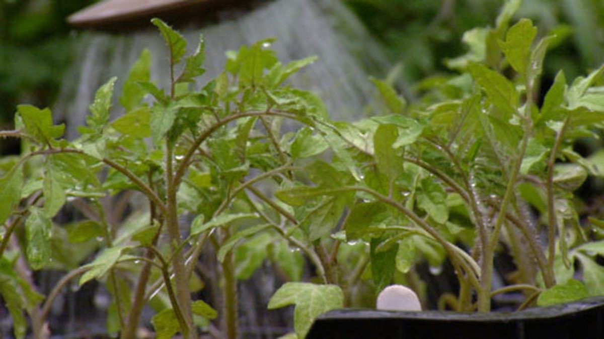 Monty checks his tomato seedlings and gives advice on how to tell when they are at just the perfect stage to pot up into larger pots. He also has advice on why it is best to give them a pot that is only a little bigger than the one they are in.
