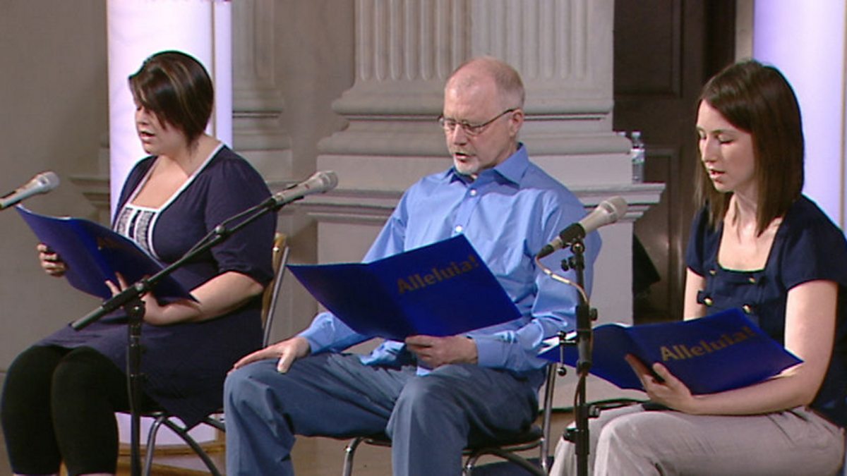 Iain MacFhionghain le measgachadh de laoidhean, sailm agus sgeulachdan pearsanta mu chreideamh. Calum Màrtainn a' seinn Salm 122