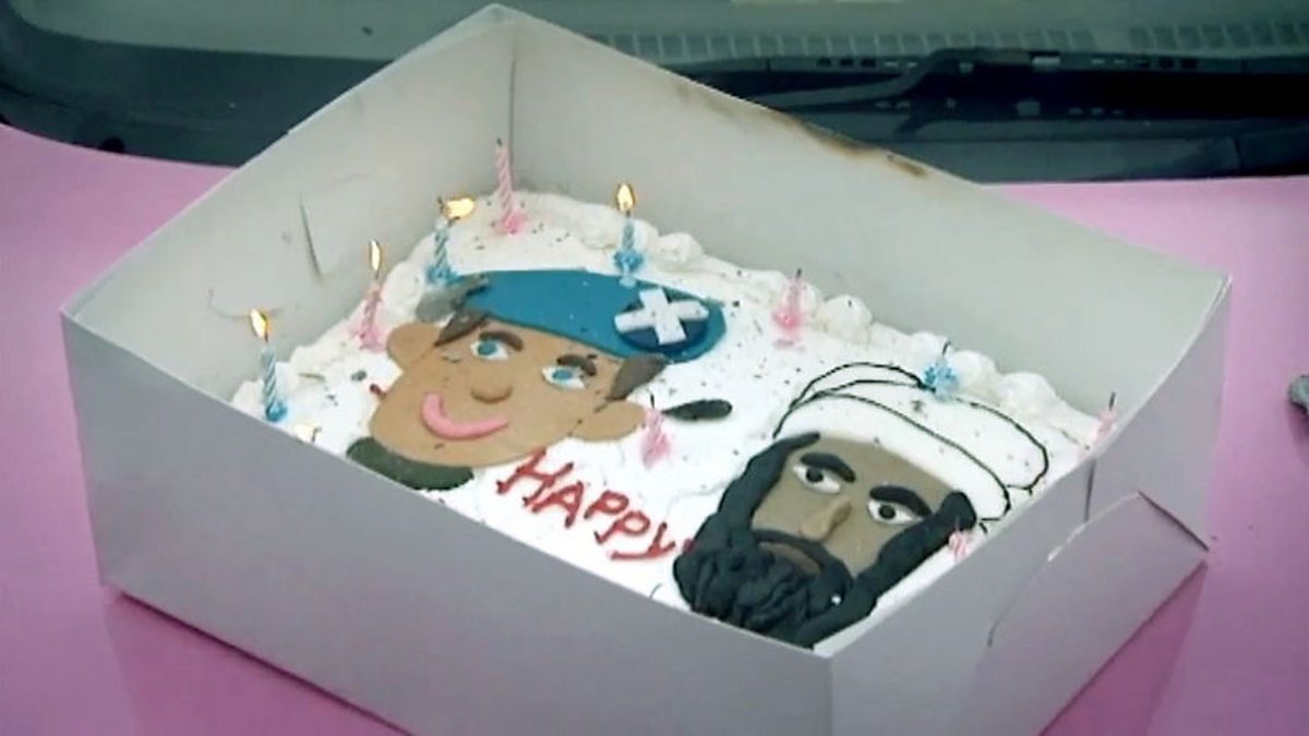Jacko's sister Julie surprises Gary with a birthday cake.