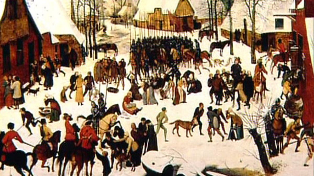 Bruegel's best-known painting appears to be a Christmas scene, but with a closer look, it becomes the massacre of a village, with the ghostly remnants of children who have been painted over in later years to conceal its true horror
