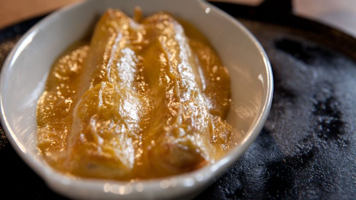 Simon Hopkinson makes pancakes with Parma ham, asparagus and homemade hollandaise sauce.