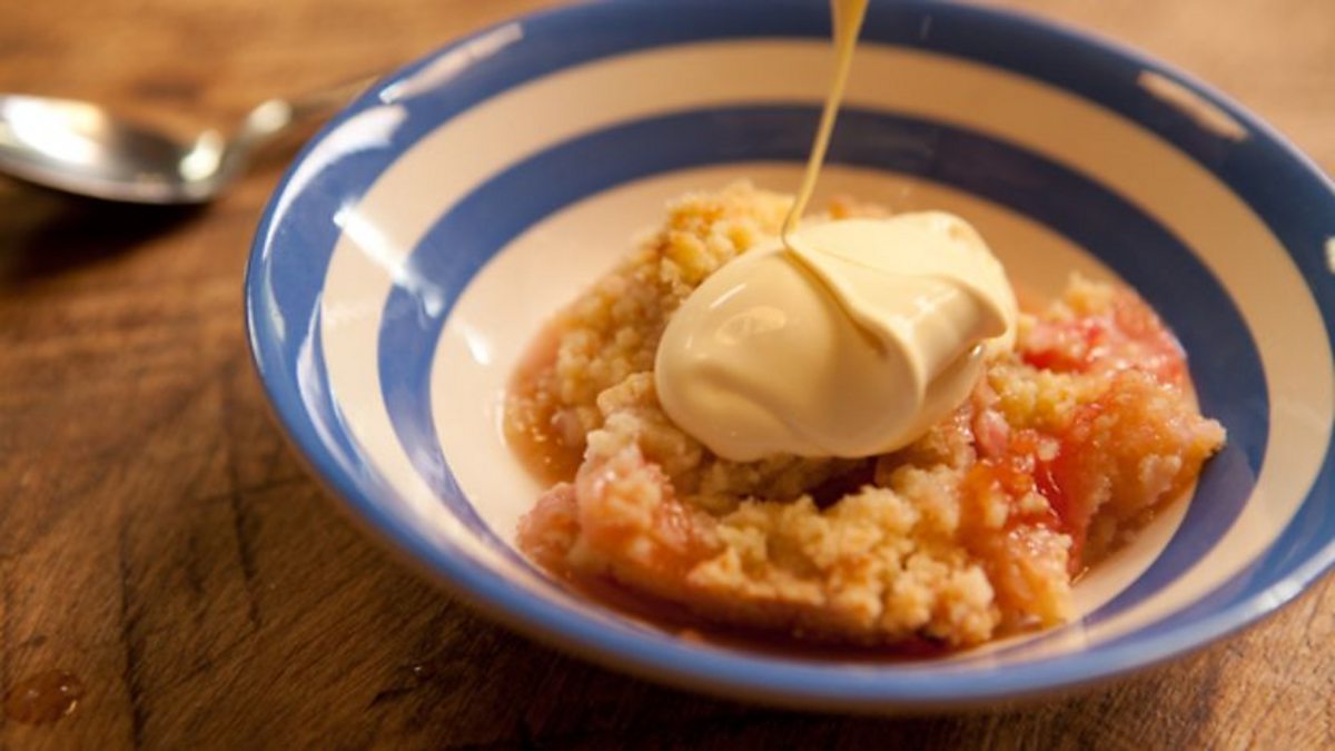 Rhubarb crumble with gorgeous Guernsey cream