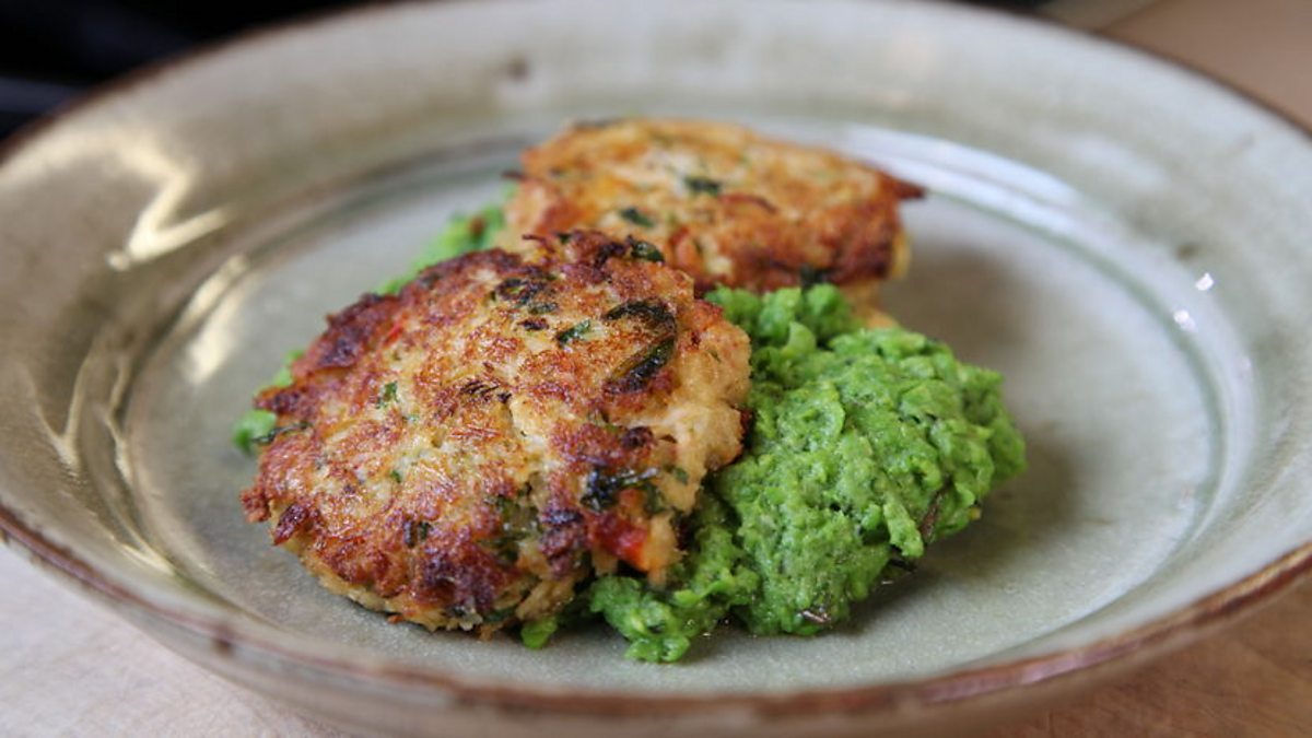 In this recipe, soft crab meat is cased in a light, crisp breadcrumb coat to give the dish a fabulous mix of textures. The fresh, crushed peas are the perfect accompaniment to this oriental twist on a chip shop classic.