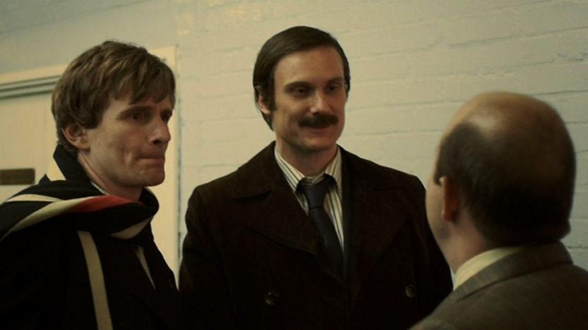 Michael Palin and John Cleese arrive at the BBC and discuss their imminent appearance on Friday Night Saturday Morning to defend their film Life of Brian against charges of blasphemy.