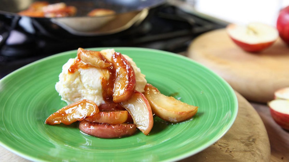 Everyone loves hot apple pie and ice cream! This dish is based on the same perfect pairing, but without the faff of making pastry. The ice cream is a doddle (no gadgets required!) and the caramelised apples heavenly. A perfect treat to round off any supper.