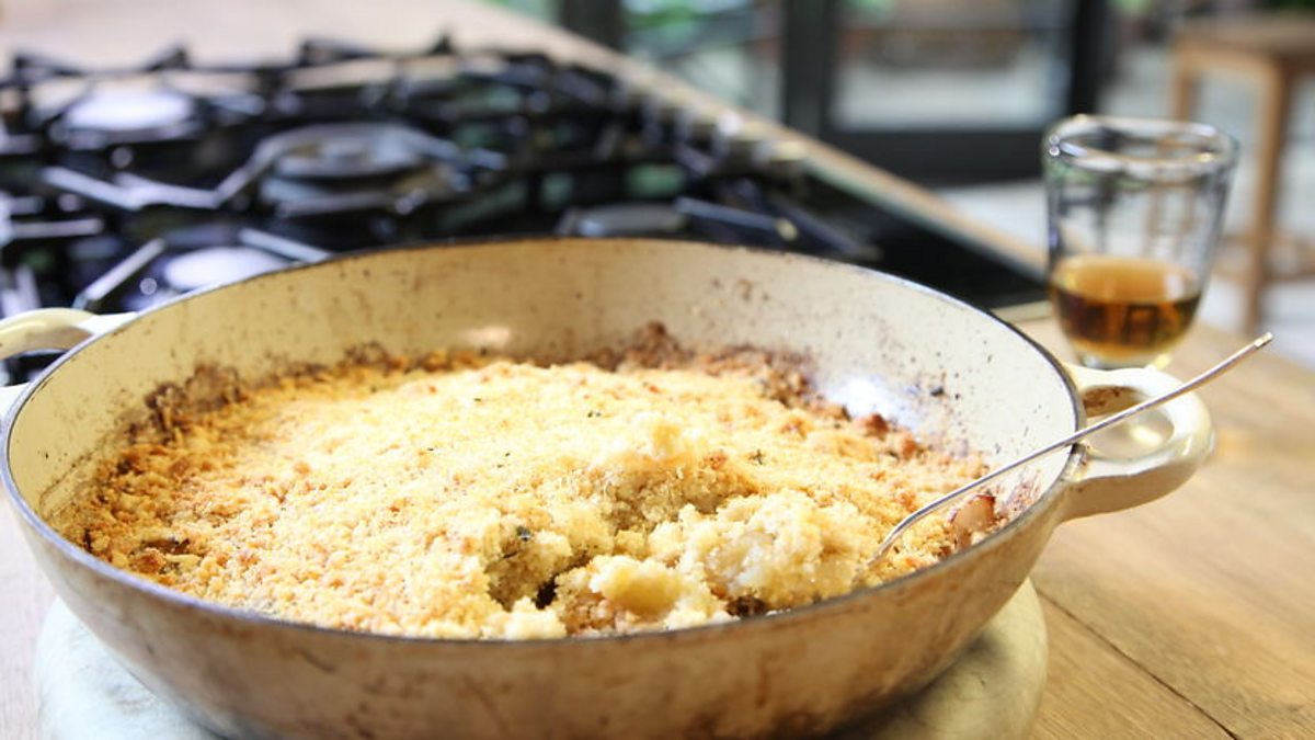 Apple and cheese is a timeless perfect pairing (think a ploughman's), so putting some Parmesan into an apple crumble isn't as weird as it might sound! A really easy way to try something new and a great little dish to partner with a Sunday roast or a couple of sausages.
