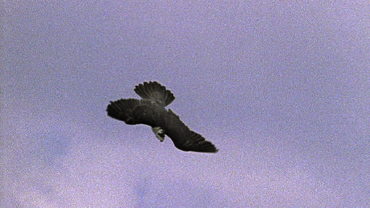 The coast of Cornwall is the territory of one of the most highly-specialised of hunting birds - the peregrine falcon - and pigeons are one of its favourite prey. The peregrine falcon watches the fast-flying pigeons from high in the sky. Wings drawn back, it dives at the pigeon, reaching speeds of 200 miles an hour. A hit with the talons at this speed kills the pigeon instantly. The peregrine returns to its nest to feed its two chicks. It must kill several times a day to feed them adequately. After five weeks the chicks are fully fledged and ready for their first flight. They start with experimental outings, getting used to the air in their wings. Ten days later they are confident enough to chase a seagull but a high-speed pounce takes a lot of learning as it means throwing the legs forward with talons outstretched. A sibling's tail makes good target practice. They perfect the roll that starts a dive and the pumping of the wings that generates incredible speed. Like so much play, it is all useful for later life. In an advanced lesson, an adult carries a wounded pigeon and drops it in mid-air for the youngster to catch. It is the youngster's first kill. In a month the young peregrine will be the swiftest of all the world's hunters.