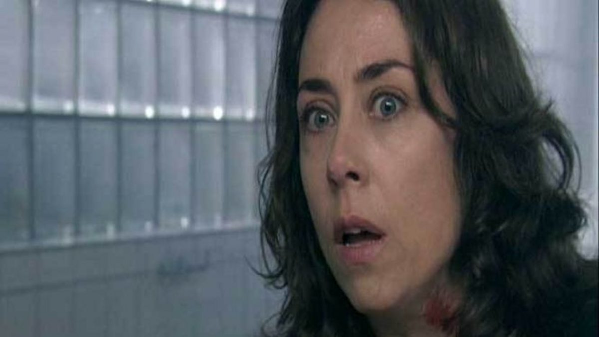 An injured Lund tracking down and pursuing the suspect through the abattoir and beyond.