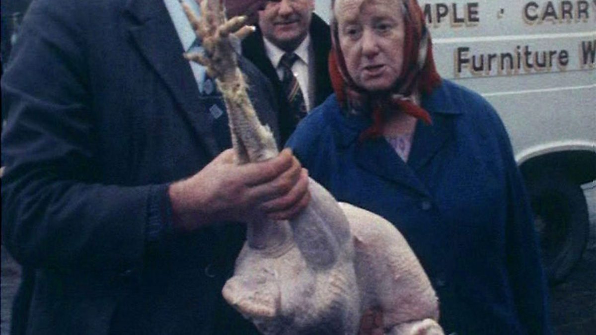 David Capper reports on a poultry market being held at Belfast's Oxford Street in December 1976.