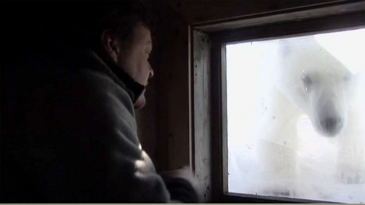 Working from a remote hut on an island off Svalbard, Jason and cameraman Mark Smith get an unexpected visit from a very curious polar bear.