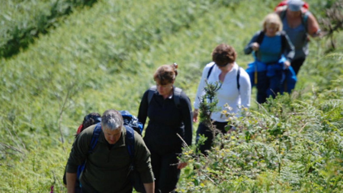 In this clip Derek and ladies from the Welsh Women Walking group arrive at the base of the mountain and begin their climb to a view point, en route to the summit.