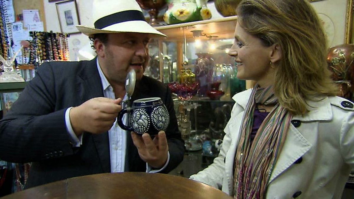 Kate's 'regimental jam pot' find turns out to be a traditional German stein. James explains the reasoning behind the unusual drinking vessel's lid.