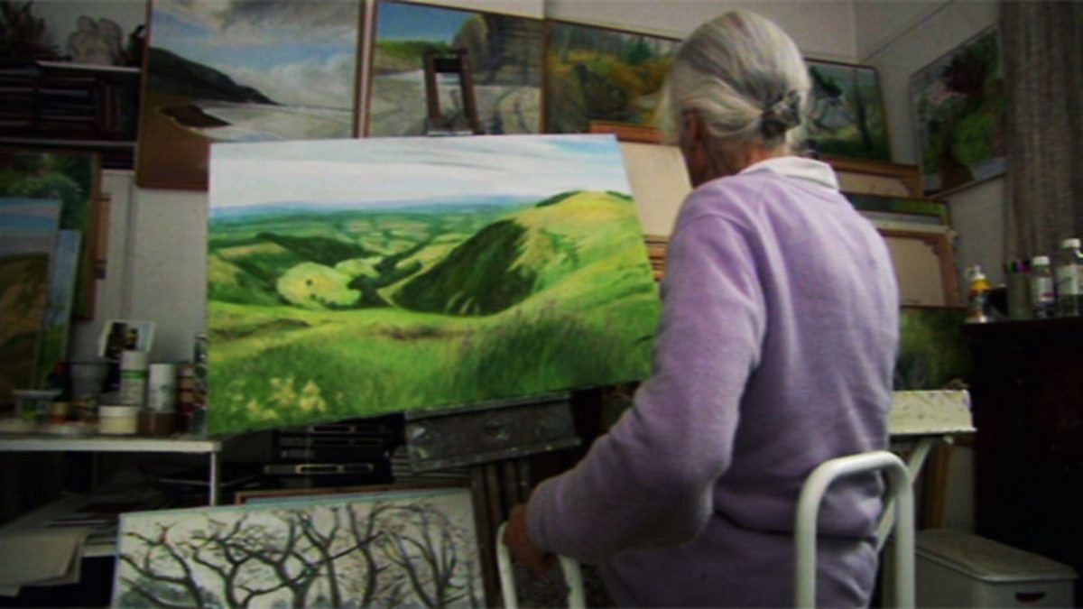 Kim Howells visits artist and lecturer Joan Baker who remembers being taught by Welsh artist Ceri Richards at the Cardiff School of Art during the Second World War. She recalls Richards bringing in a surrealist masterpiece 'Bride of the Wind' by the German artist Max Ernst for the students to learn from. Includes views of the painting. Howells discusses Baker's career - first of all a lecturer at the Cardiff School of Art, then in later life a landscape painter producing artworks depicting the south Wales landscape.