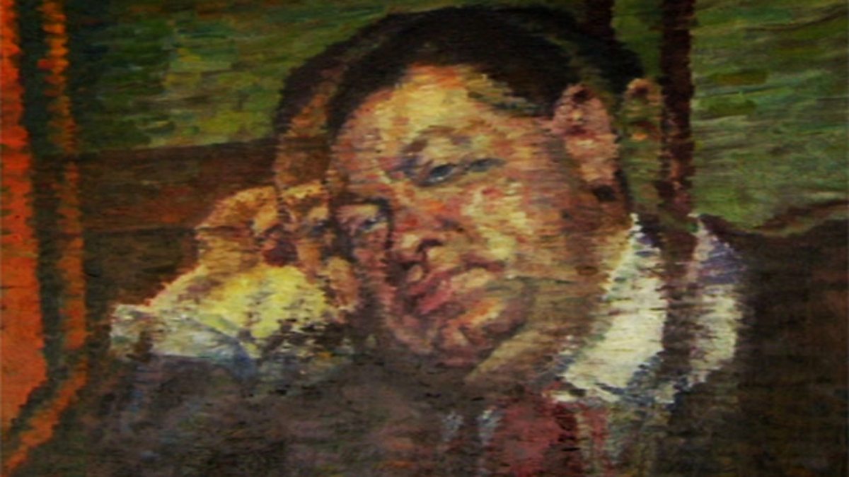 Black and White archive film with original commentary explaining the method of double-image painting. The film shows Evan Walters painting a figure of a model using this technique. Presenter Kim Howells interviews Conservation Officer Emma Fisher at Swansea's Glynn Vivian art gallery in front of one of Evan Walters's double-image paintings 'Stout Man with a Jug', painted in the 1930's. Emma explains how parts of the image are repeated - hand, eye, etc. and that this gives an effect of movement. She suggests that this may have been his response to the experimentation taking place in art at the time, his stab at modernism. Emma then shows one simple step in cleaning a painting of this age and condition, simply using a cotton bud and a little saliva.