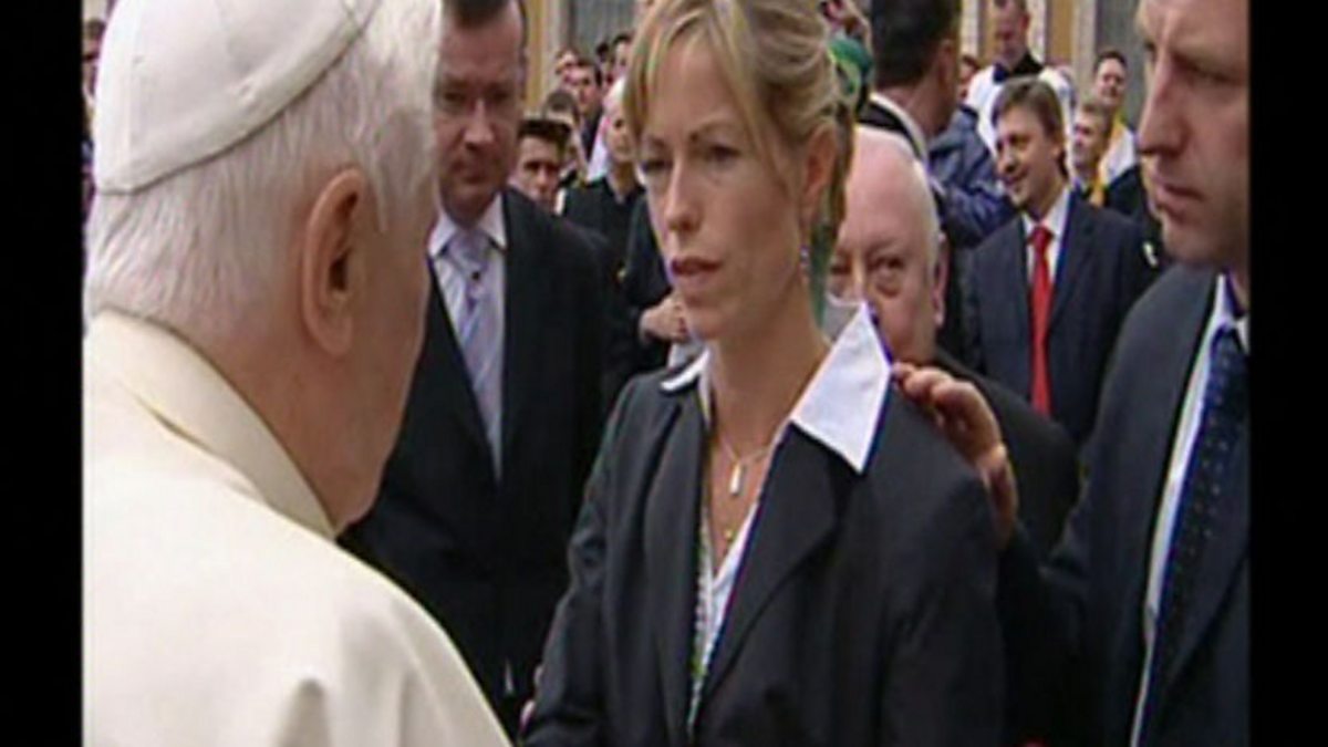News report on Kate and Gerry McCann's visit to the Pope in Rome after the disappearance of their daughter Madeleine McCann from a holiday apartment in Portugal. Stresses the media interest and highlights a positive aspect of media power.