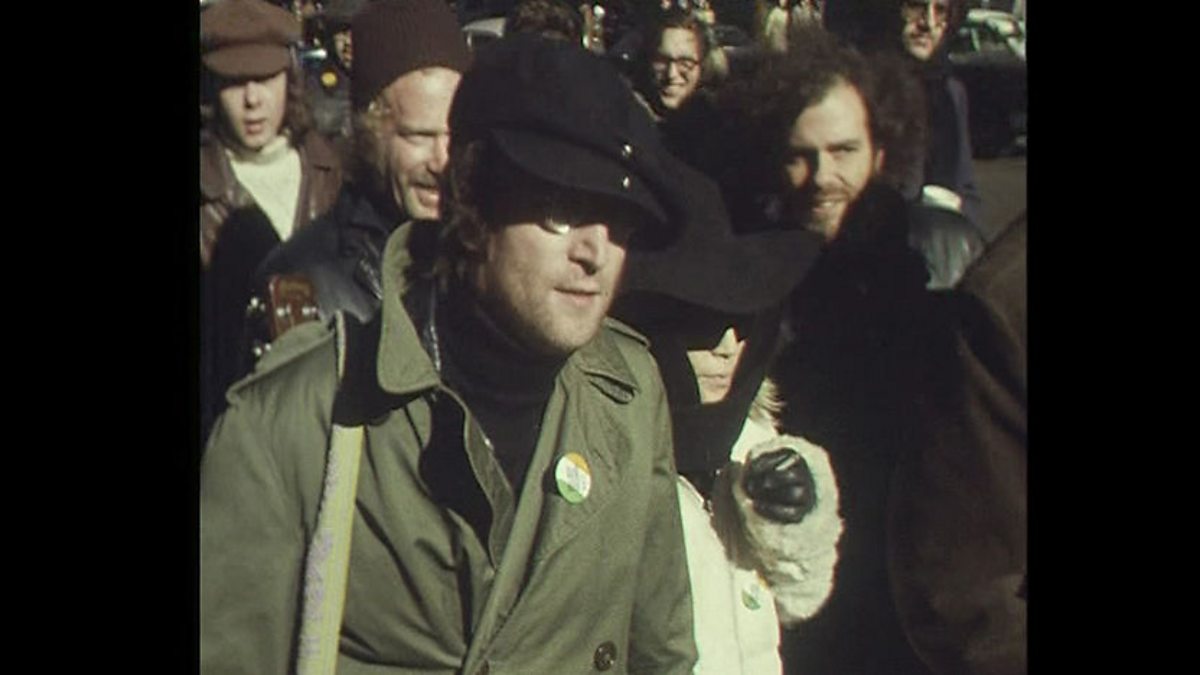 The protesters chant "British troops must go" and hold placards with legends such as 'Why must one die for basic civil rights?' and 'Smash US and British Imperialism'. Present on the march is John Lennon, who can be heard to say "get them Scots-Anglos out of the North", and Yoko Ono.