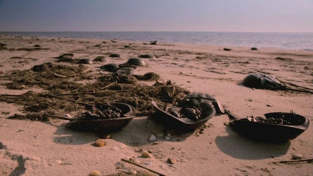 Horseshoe crabs can survive until the next tide as long as they can keep their gills moderately damp. Each female lays up to twenty clutches of several thousands eggs that are are the same size as caviar. Such a vast quantity ensures its survival even though only a few get to hatch.