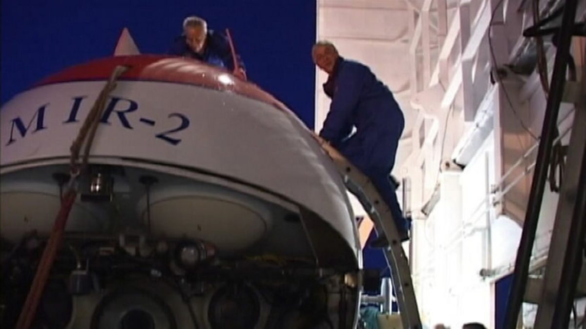 The submarine rolls around in the swell as it re-emerges and awaits its lift back onto its mother ship, the Keldysh. The crew have been under water now for almost ten hours, an extraordinary journey in an extraordinary vessel.