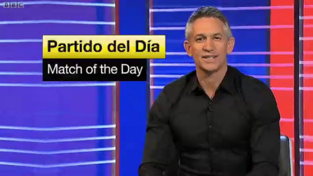 Gary Lineker presents Match of the Day in Spanish and talks about his time playing in Barcelona, where Spanish and Catalan are spoken.