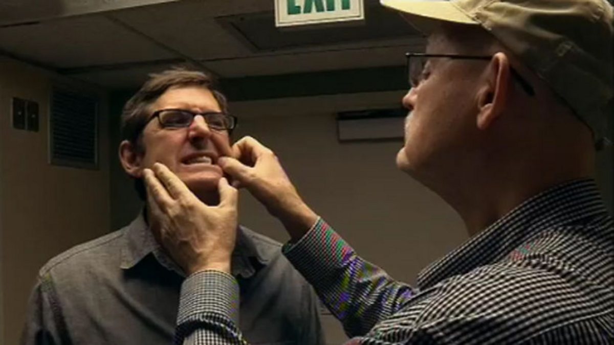 When Gary has his sights set on leaving Beatitudes, the nurses distract the former dentist by asking him to check their teeth. Here he gives Louis' teeth the once-over.