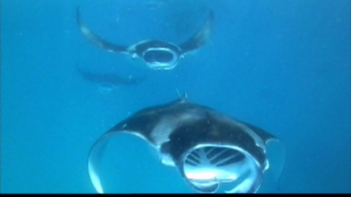 With a wing span of to 7 metres, the Mantas have travelled for hundreds of miles from across the Indian Ocean to feed on clouds of plankton here. But their long term survival is threatened by human activity