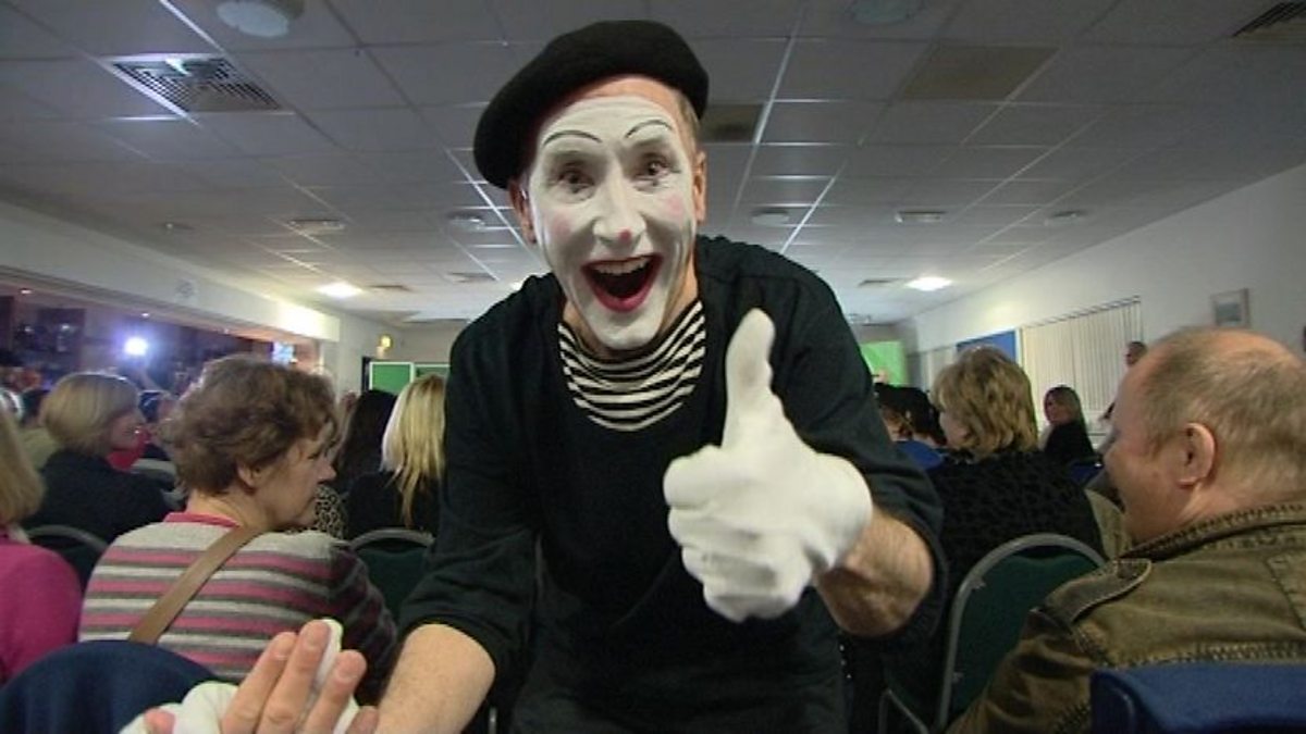 Deaf American mime artist James Jones, JJ for short, was recently over here doing performances at deaf clubs around the UK. We caught up with him at Slough Deaf Centre, where he gave presenter Ahmed Mudawi a lesson in the amazing art of mime.