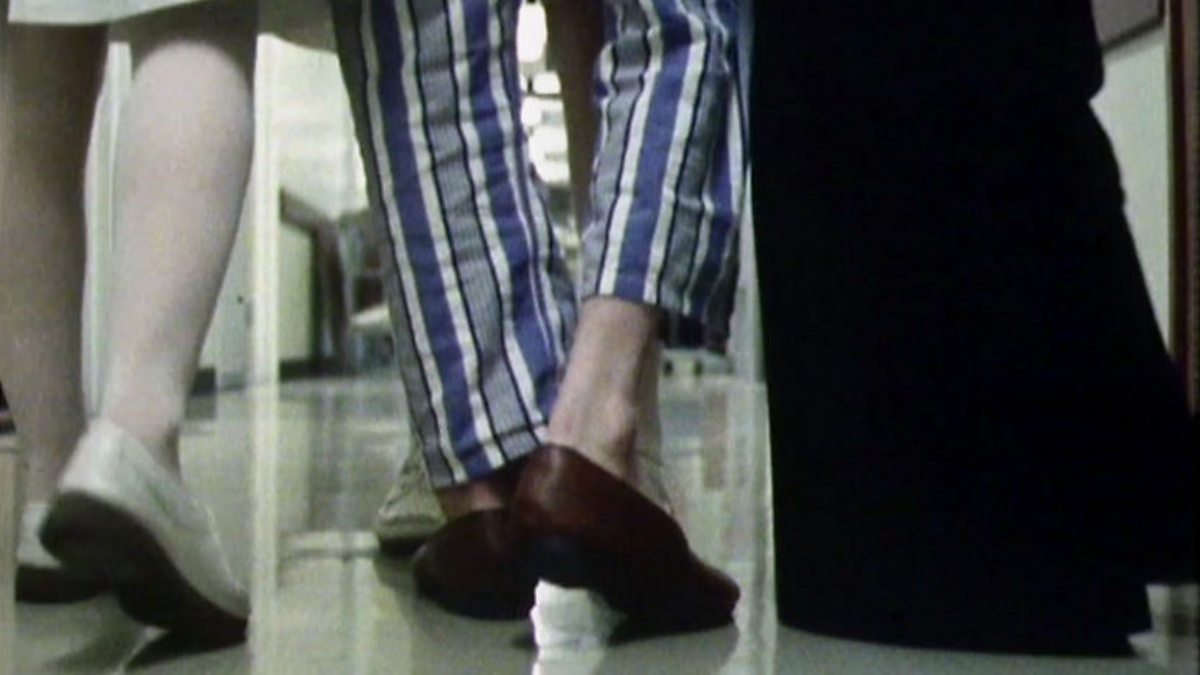 Nurses and physiotherapists help injured soldiers, Keith, to take his first steps after an attack on the saracen vehicle in which he was travelling. Harold Williamson reports from the Royal Victoria Hospital, Belfast, where a team of surgeons have developed new techniques of neurosurgery from the violence of Ulster.