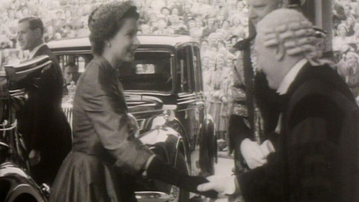 BBC archive clips of Queen Elizabeth II's visits to Northern Ireland.