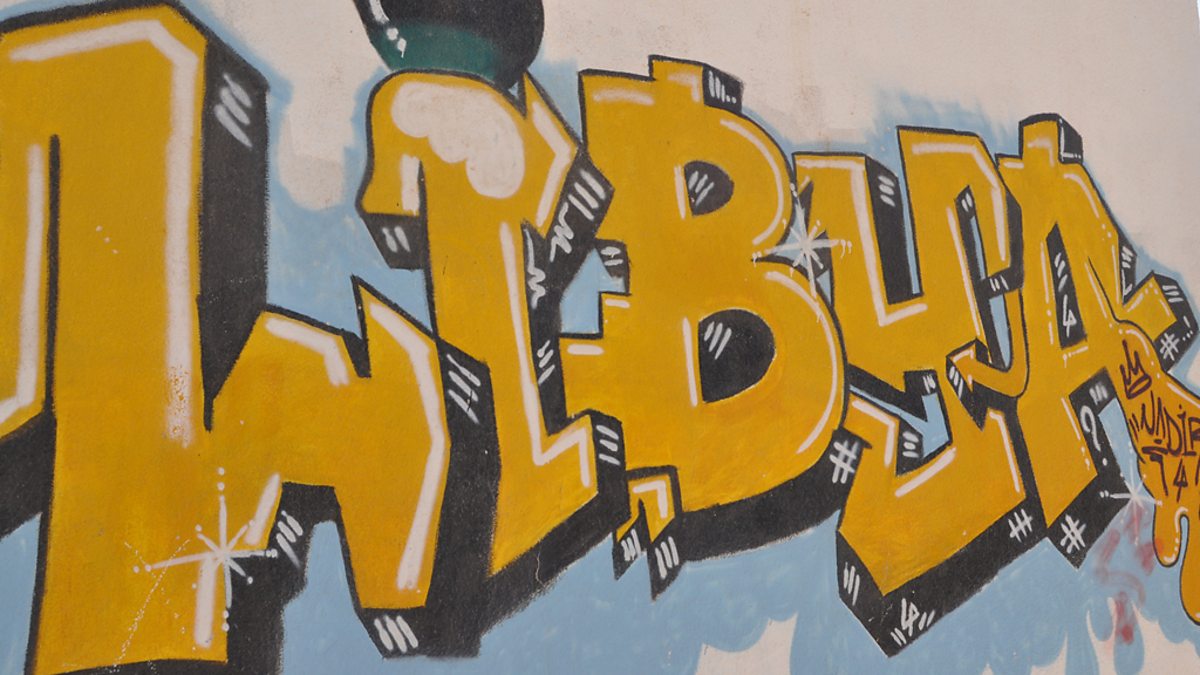 (Image: The word 'Libya' spray-painted in yellow graffiti by street artist Nadir in Benghazi)
