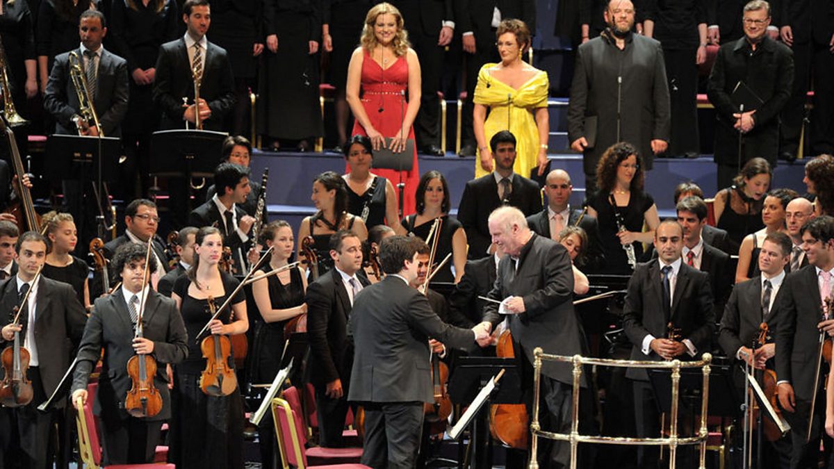 Daniel Barenboim conducts the West-Eastern Divan Orchestra and National Youth Choir of Great Britain in the finale of Beethoven's Ninth Symphony.
