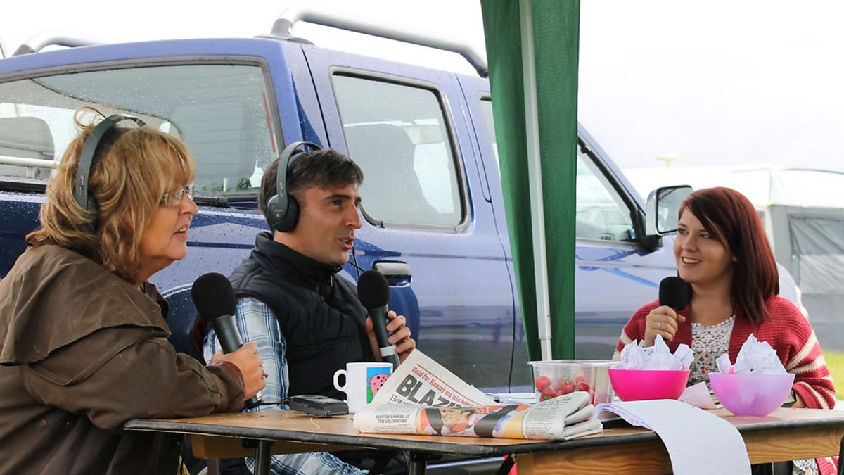 Rhaglen Dafydd a Caryl yn fyw o Faes Carafanau Eisteddfod Bro Morgannwg.